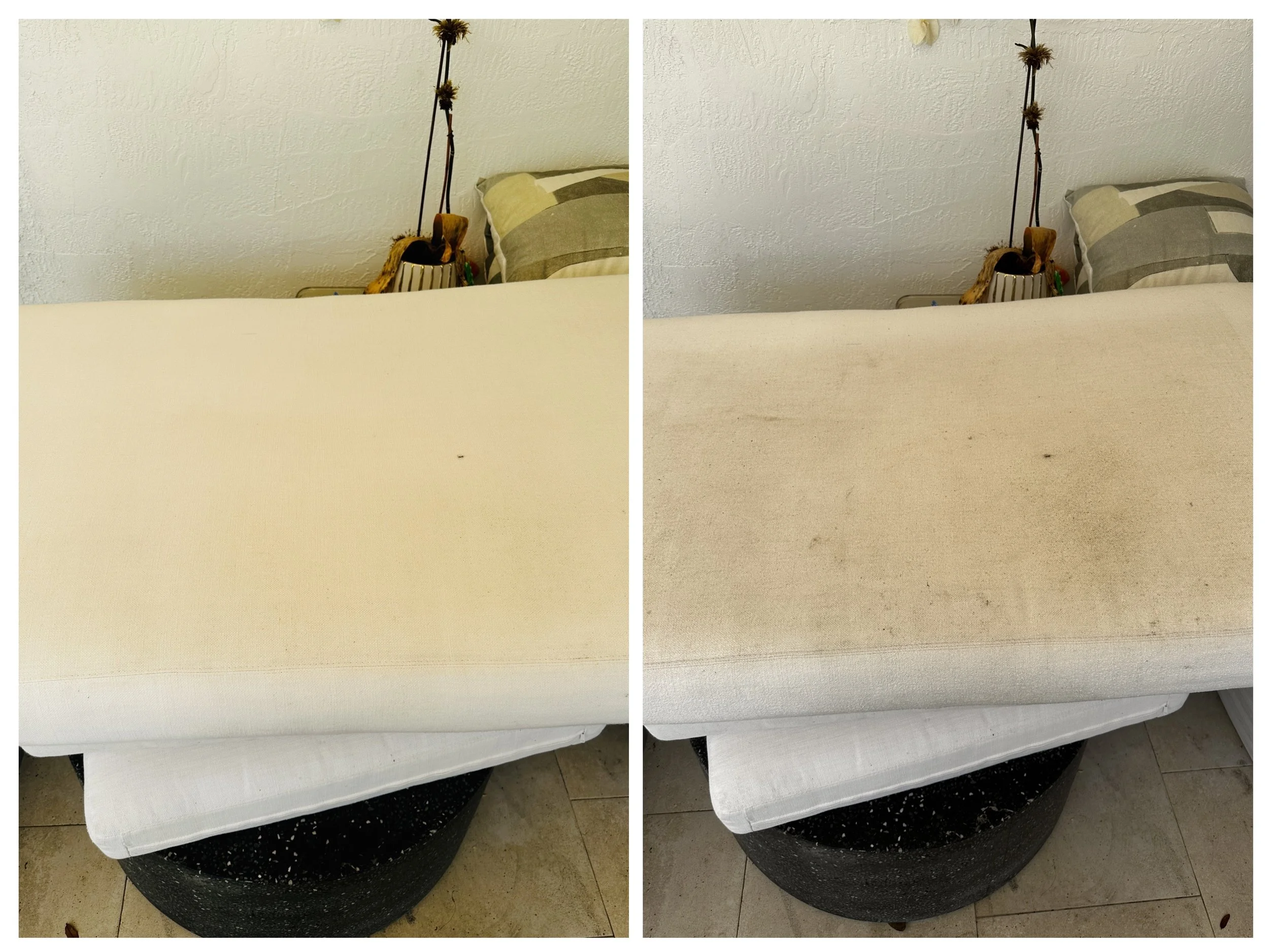 Hi an update on the white chair cleaning. So I protected the upholstery with Scotchgard last time about 6 months ago and this visit the stains and dirt came off so easily I highly recommend protecting your sofa after cleaning. Always in Miami 24/7 for all your sofa cleaning needs